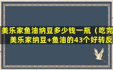关于“吃完美乐家纳豆+鱼油的43个好转反应”,这个说法可能源自于网络上的个人经验分享或者营销宣传。需要注意的是,这些所谓的“好转反应”并没有经过科学验证,因此不能作为健康建议。