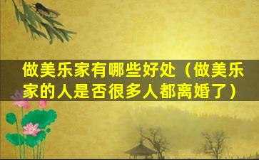 关于“做美乐家的人是否很多人都离婚了”的问题,首先需要澄清“美乐家”指的是什么。如果是指一个特定的社会群体、职业或者某种生活方式,那么这个问题的答案将取决于该群体、职业或生活方式的特点以及相关的社会学研究。