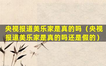关于“央视报道美乐家是真的吗还是假的”,我无法提供即时的信息或验证。央视(中国中央电视台)是中国最大的国家级电视台,其报道通常被认为是权威和可靠的。任何媒体都可能出现错误或被误解的情况,因此对于特定的报道,最好是直接查看央视的官方发布或通过多个来源进行核实。