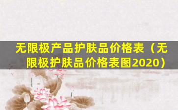 很抱歉,我无法提供具体的“无限极护肤品价格表图2020”,因为我的知识截止日期是2023年,而且我无法访问实时的网络数据或图片。无限极是一家中国的直销公司,以销售健康食品、个人护理产品等而闻名。如果您想了解无限极护肤品的价格,建议您直接访问无限极的官方网站或联系其官方客服获取最新的产品信息和价格表。