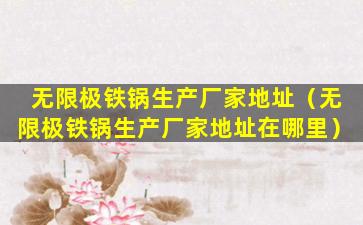 无限极是一家中国的健康产品公司,主要生产和销售中草药健康产品,而不是铁锅。因此,无限极并没有铁锅生产厂家地址。如果您在寻找铁锅生产厂家,建议您查找专门生产厨房用品的公司。在搜索时,请确保您获取的信息来自官方或可靠的来源,以避免误导。