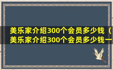 美乐家(Melaleuca)是一家美国的直销公司,主要销售健康、个人护理、家庭清洁等产品。关于“介绍300个会员多少钱一个”的问题,这取决于美乐家的具体奖励计划和政策,因为这些可能会随时间和地区的不同而有所变化。