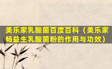 截至我的知识更新日期(2023年),“美乐家乳酸菌”并不是一个广为人知的品牌或产品名称,因此在百度百科上可能没有专门的条目。百度百科是一个中文的网络百科全书,用户可以在上面查找各种主题的信息,包括品牌、产品、人物、历史事件等。