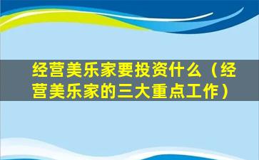 美乐家(Melaleuca)是一家美国的直销公司,主要经营健康、个人护理、家庭清洁和营养补充品等产品。如果你想要经营美乐家,你需要投资的是直销行业。直销是一种销售模式,产品不通过传统的零售渠道销售,而是通过个人销售代表直接向消费者销售。