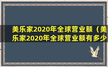 如果您需要最新的营业额数据,建议直接联系美乐家公司或查看其官方发布的最新公告和新闻稿,以获取最准确的信息。由于我的知识截止日期是2023年,我无法提供2020年之后的具体数据。