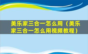 如果你需要具体的视频教程,建议你访问美乐家的官方网站或联系他们的客服,他们可能会提供相关的使用指南或视频链接。你也可以在视频分享平台如YouTube上搜索“美乐家三合一清洁剂使用方法”或类似的关键词,可能会有其他用户分享的使用教程。
