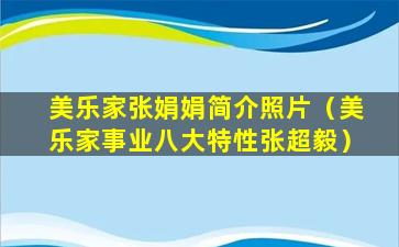 很抱歉,我无法提供关于“美乐家张娟娟”的简介或照片,因为这可能涉及到个人隐私。如果您需要了解某个公众人物或特定领域的专家的信息,请确保您是通过合法和适当的渠道获取这些信息,并尊重个人隐私权。如果您有其他问题或需要帮助,请告诉我,我会尽力提供帮助。