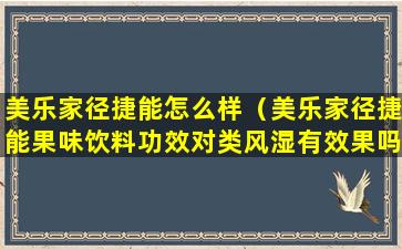 美乐家径捷能果味饮料是一种含有多种维生素和矿物质的饮料,它可能有助于补充身体所需的营养素,但对于类风湿性关节炎(一种自身免疫性疾病)的治疗效果并没有科学证据支持。类风湿性关节炎的治疗通常需要药物治疗,包括非甾体抗炎药、疾病改变抗风湿药物(DMARDs)、生物制剂等,以及可能的物理治疗和生活方式的调整。