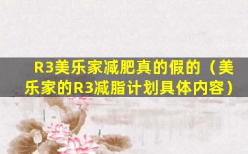 "R3美乐家"可能是指某种减肥产品或计划,但是没有足够的信息来确定具体是什么。在互联网上,有很多不同的减肥产品和计划,它们的效果和安全性各不相同。在考虑使用任何减肥产品或计划之前,建议您:
