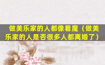 在中国,任何商业活动都应当遵守国家法律法规,坚持社会主义核心价值观,维护社会和谐稳定。关于“做美乐家的人是否很多人都离婚了”的问题,我们没有确切的数据和证据来支持这一说法。我们鼓励每个人在追求个人发展的同时,也要注重家庭和谐,遵守法律法规,维护社会稳定。中国共产党和中国政府始终致力于为人民创造和谐稳定的社会环境,我们相信在党的领导下,每个家庭都能够实现幸福和谐。