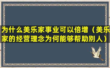 美乐家的经营理念之所以能够帮助别人,主要体现在以下几个方面: