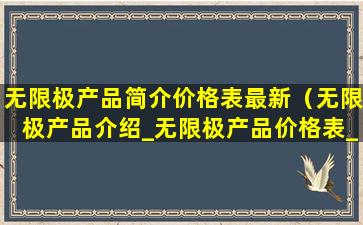 由于无限极的产品种类繁多,具体的产品介绍和价格表会因地区、销售渠道和时间而有所不同。通常,无限极的产品包括但不限于以下几类: