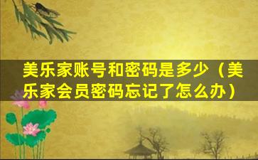 很抱歉,我无法提供任何个人的账号和密码信息,包括美乐家的账号和密码。账号和密码是个人隐私信息,应当由用户本人妥善保管,不应向他人透露,包括在网络上询问或分享。