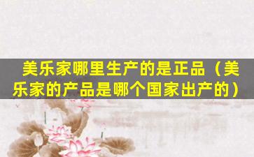 美乐家(Melitta)是一个知名的咖啡和咖啡机品牌,起源于德国。正品美乐家产品通常在德国或其他授权的工厂生产。为了确保购买到正品美乐家产品,建议消费者通过官方渠道或授权的零售商购买。