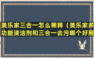 请注意,如果你指的是美乐家的其他类型的“三合一”产品,比如清洁剂或洗衣液,那么它们的稀释方法可能会有所不同。在这种情况下,你应该参考产品包装上的说明或联系美乐家的客服获取正确的稀释指南。