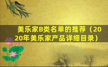 关于“美乐家B类名单的推荐”,目前没有官方的信息或者权威的推荐列表。美乐家(Melaleuca)是一家美国的健康产品公司,以直销模式销售其产品。如果您是在寻找美乐家产品的推荐或者评价,建议您参考以下几个途径: