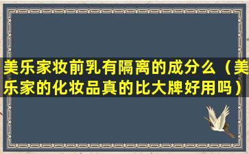 为了了解美乐家妆前乳是否含有隔离成分,最准确的方法是查看产品的成分列表或官方说明。通常,产品包装上会列出所有成分,并可能提供关于产品功能的描述。如果您无法找到这些信息,可以联系美乐家的客服部门,他们可以提供详细的产品信息。