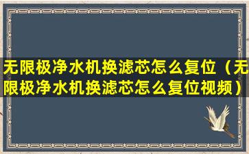 请注意,操作前务必阅读并遵循净水机的用户手册,以确保正确和安全地进行滤芯更换和复位操作。如果你不确定如何操作,建议联系专业人员或无限极客服进行指导。