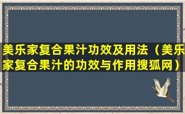 关于“美乐家复合果汁”的功效与作用,我们无法提供具体的评价,因为这需要基于科学研究和权威机构的评估。在中国,任何食品或保健品的宣传都应当遵守相关法律法规,不得进行虚假或夸大的宣传。