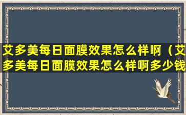 关于艾多美每日面膜的效果,以下是一些可能的评价方面: