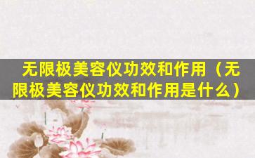 无限极(Infinitus)是一家中国的健康产品公司,主要生产和销售中草药健康产品。关于“无限极美容仪”的功效和作用,由于信息有限,我无法提供具体的产品信息。通常,美容仪器的功效和作用可能包括: