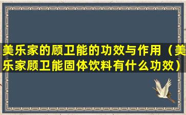 关于“美乐家的顾卫能”的功效与作用,目前没有官方的科学研究或权威机构的认证信息。在中国,任何药品或保健品的功效和作用都需要经过国家药品监督管理局的批准,并且必须有明确的科学依据和临床试验数据支持。