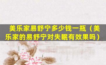 美乐家(Melaleuca)是一家美国的健康产品公司,提供各种营养补充品、个人护理产品、家庭清洁用品等。关于“易舒宁饮料”,这可能是美乐家的一款产品,但由于信息有限,我无法提供具体的产品信息。