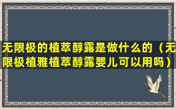 无限极植雅植萃醇露是一款护肤产品,通常用于滋润和保护成人肌肤。对于婴儿使用的产品,通常需要特别温和、无刺激,并且适合婴儿娇嫩肌肤的特殊需求。