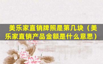 关于“第几块牌子”的问题,这可能指的是在中国获得直销牌照的顺序。中国商务部会根据申请和审核情况,陆续向符合条件的企业发放直销牌照。由于具体的牌照发放时间和顺序可能会随时间而变化,且我无法提供最新的数据,因此无法准确回答美乐家在中国获得的直销牌照是第几块。