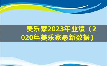 关于美乐家2023年的业绩,由于我的知识截止日期是2023年4月,我无法提供最新的财务数据或业绩报告。通常,公司的年度业绩报告会在财年结束后的一段时间内公布,这可能需要等到2024年初才能获得确切的数据。