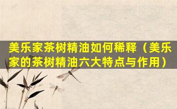 美乐家(Melaleuca)的茶树精油是一种常用的精油,具有抗菌、抗炎和消毒的特性。在使用茶树精油时,尤其是用于皮肤或身体时,通常需要将其稀释以减少潜在的刺激性。以下是稀释美乐家茶树精油的一般步骤: