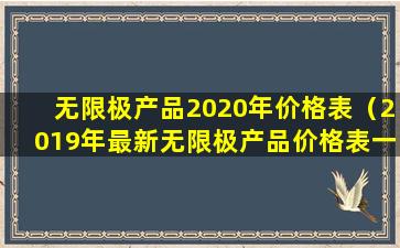很抱歉,我无法提供2019年无限极产品的最新价格表,因为我的知识截止日期是2023年,而且我无法访问实时数据或外部数据库。无限极是一家中国的直销公司,主要销售健康食品、个人护理产品等。如果您需要无限极产品的最新价格信息,建议您直接访问无限极的官方网站或联系其客服获取最准确的信息。同时,请注意,直销产品的价格可能会因地区、促销活动等因素而有所不同。