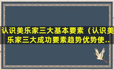 美乐家(Melaleuca)是一家美国的健康与保健产品公司,它以直销模式销售其产品。认识美乐家的三大基本要素通常包括: