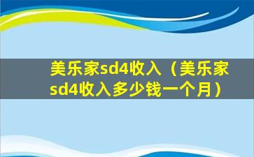 如果“美乐家sd4”是指某个职位或者工作岗位,那么其收入水平通常会根据该岗位的职责、工作地点、行业标准、个人能力等因素来确定。在中国,根据《中华人民共和国劳动法》和相关政策,员工的工资应当符合国家规定的最低工资标准,并且应当通过劳动合同明确约定。