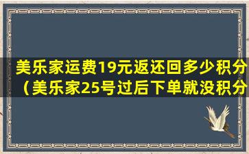 通常情况下,如果美乐家有提供运费返还积分的政策,那么返还的积分数量会根据公司的具体规定来确定。例如,如果公司规定每支付1元运费可以返还10积分,那么支付19元运费可能会返还190积分。但这只是一个假设的例子,实际的返还比例需要根据美乐家的实际政策来确定。