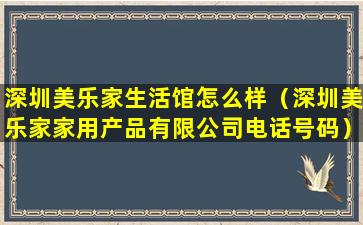 关于深圳美乐家生活馆的具体情况,以下是一些可能的评价维度: