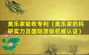 由于“美乐家吸收专利”不是一个明确的术语,我无法提供具体的专利信息。如果您需要了解美乐家某个具体产品的专利信息,建议直接咨询美乐家公司或查看其官方网站上的产品说明和专利声明。