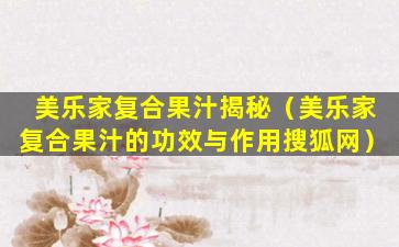 美乐家复合果汁是一种由美乐家公司(Melaleuca Inc.)生产的健康饮品。美乐家是一家美国的直销公司,以销售各种健康、个人护理和家庭清洁产品而闻名。复合果汁通常是指含有多种水果和/或蔬菜成分的果汁,旨在提供多种维生素、矿物质和抗氧化剂。