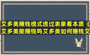 以下是一些关于如何在艾多美赚钱的基本信息: