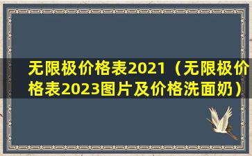 很抱歉,我无法提供无限极2023年的价格表图片及具体产品的价格信息,因为我的知识截止日期是2023年4月,且我无法访问互联网以获取最新的数据。无限极是一家知名的健康产品公司,提供包括洗面奶在内的多种个人护理产品。