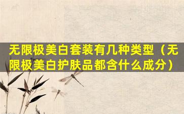 无限极(Infinitus)是一家中国的健康产品公司,其产品线涵盖了保健品、个人护理品等多个领域。关于无限极的美白套装,由于产品线可能会随着时间更新和调整,具体的套装种类和成分可能会有所变化。