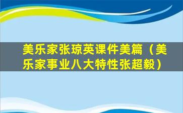 很抱歉,我无法提供关于“美乐家张琼英课件美篇”的具体内容,因为这可能涉及到版权保护的材料。如果您需要关于某个特定主题的信息或者想要了解如何创建有效的课件,我可以提供一些一般性的建议和指导。