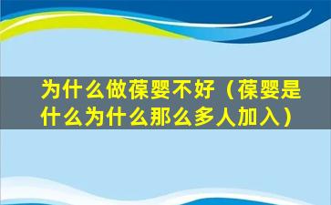 关于“葆婴”这一概念,目前没有确切的信息表明它是一个普遍认可的产品、服务或品牌。因此,无法直接评价“做葆婴不好”的原因。如果您是指某种特定的产品或服务,请提供更多的上下文信息,以便进行准确的分析和回答。