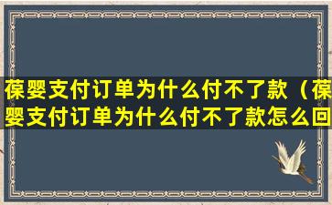 关于您提到的“葆婴支付订单为什么付不了款了”的问题,这可能是由于多种原因造成的。以下是一些可能的原因和建议的解决步骤: