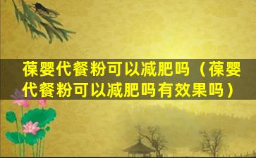 是否能够通过葆婴代餐粉减肥,取决于多种因素: