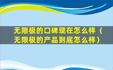由于口碑是一个动态变化的概念,无限极的口碑可能会随着时间、市场环境、公司策略和消费者态度的变化而变化。如果您想了解最新的无限极口碑情况,建议查看最新的消费者评论、新闻报道和市场研究报告。同时,也可以参考社交媒体和在线论坛上的讨论,以获取更广泛的消费者意见。