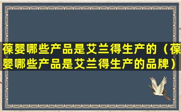 葆婴(Baoying)是一家中国的保健品公司,而艾兰得(Aland)是一家专注于生产维生素和矿物质补充剂的公司。如果您提到的“葆婴哪些产品是艾兰得生产的”,这可能意味着葆婴品牌的某些产品是由艾兰得公司代工生产的。