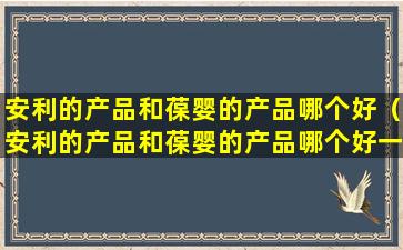 “哪个好”这个问题没有绝对的答案,因为这取决于您的具体需求和偏好。如果您是在寻找成人健康营养品或美容护肤品,安利可能是一个不错的选择。如果您是在寻找婴幼儿护理产品,那么葆婴可能更适合您的需求。