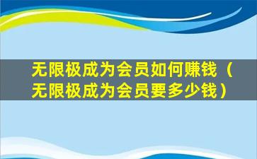 无限极是一家中国的直销公司,主要销售健康食品、个人护理品和家居用品等。成为无限极的会员通常需要购买一定金额的产品或者支付一定的费用。具体的费用和条件可能会随着时间和地区的不同而有所变化。