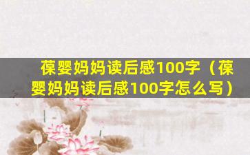 《葆婴妈妈》是一本关于育儿和家庭生活的书籍,它可能包含了作者对于如何成为一个好妈妈、如何照顾婴儿以及如何平衡家庭与工作的经验和建议。由于您提供的读后感只有100字,我无法提供具体的书评内容,但我可以给您一些建议,如果您想要写一篇简短的读后感,可以考虑以下几个方面: